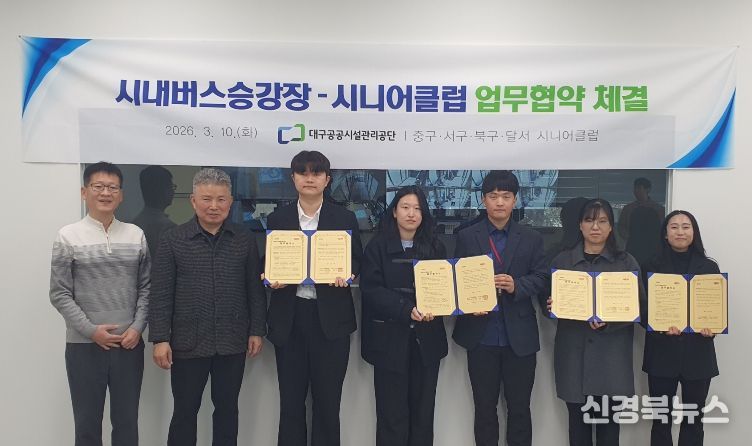 [신경북뉴스] 대구공공시설관리공단과 중구, 달서구, 서구, 북구 시니어클럽이 시내버스승강장 도우미 사업을 위한 협약을 체결했다.
