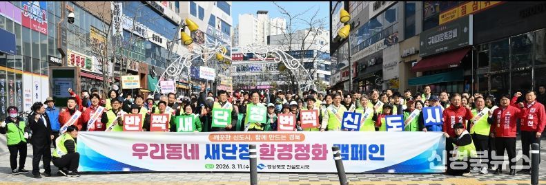 [신경북뉴스] 경상북도는 3월 11일 오후 2시, 경북도청 신도시에서 주민들과 여러 기관이 함께 환경정화 캠페인 ‘우리동네 새단장’을 실시했다.