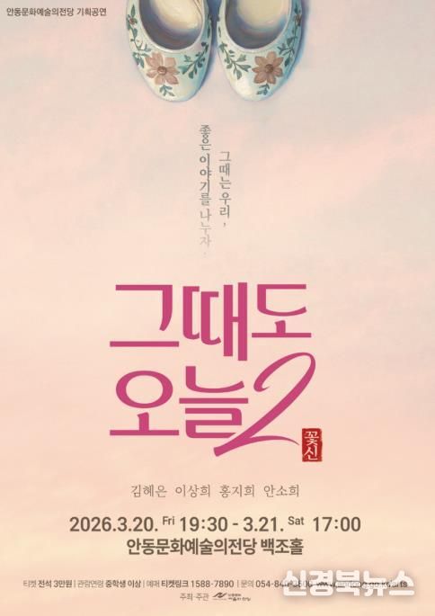 이 가운데 연극 ‘그때도 오늘 2 : 꽃신’이 올해 연극 프로그램의 시작을 알리는 작품으로 선정됐다. 이 공연은 3월 20일 오후 7시 30분과 3월 21일 오후 5시, 안동문화예술의전당 백조홀에서 무대에 오른다. ‘공연배달서비스 간다’의 대표 레퍼토리 ‘그때도 오늘’의 두 번째 이야기로, 탄탄한 극본과 배우들의 진정성 있는 연기로 관객들의 호평을 받고 있다.