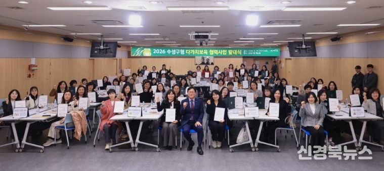 [신경북뉴스] 수성구는 지난 11일 구청 대강당에서 '2026년 수성구형 다가치보육 협력사업 발대식'을 열었다. 이번 행사에는 지역 내 어린이집과 유치원 관계자 70여 명이 참석했다.