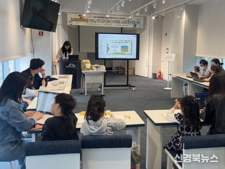 [신경북뉴스] 수성구육아종합지원센터가 지난 13일 지역 내 영유아 가족을 대상으로 ‘인공지능(AI)과 함께 만드는 우리 가족 동화책 만들기’ 프로그램을 운영했다.