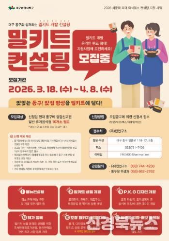 [신경북뉴스] 대구 동구청이 4월 8일까지 '식문화 리더 외식 업소 컨설팅 지원사업'에 참여할 업소를 모집한다.