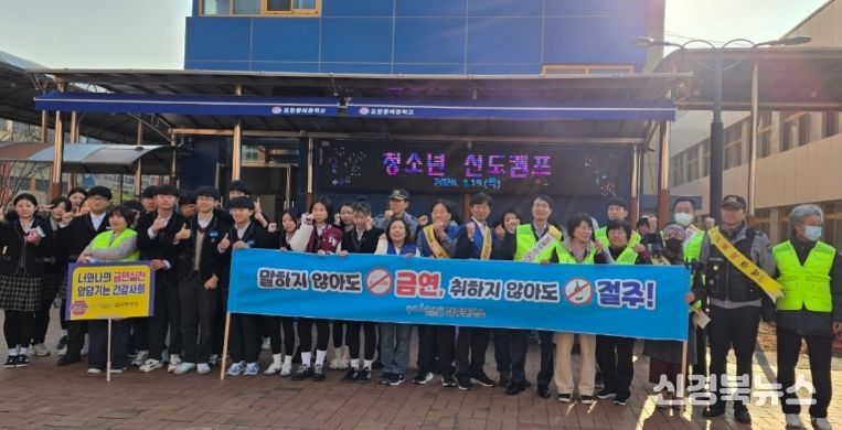 [신경북뉴스] 포항시 남구보건소는 19일 동해중학교 등교 시간에 맞춰 학생들을 대상으로 금연과 금주 등 ‘청소년 유해 환경 예방 합동 캠페인’을 실시했다.
