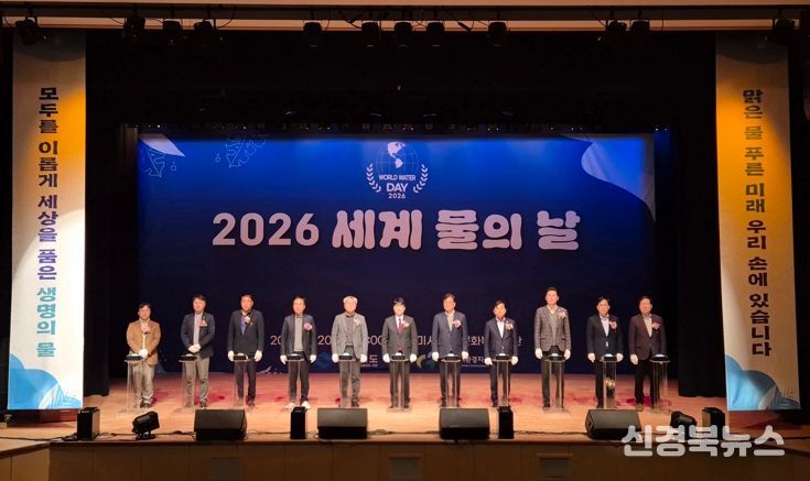 [신경북뉴스] 경상북도는 20일 오후 2시, 구미 강동문화복지회관에서 유엔이 정한 ‘세계 물의 날’을 맞아 경북녹색환경지원센터와 함께 물 관리의 중요성과 소중함을 알리기 위한 ‘2026년 세계 물의 날 기념행사’를 개최했다.