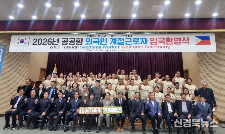 [신경북뉴스] 청도군이 올해 도입한 공공형 외국인 계절근로사업의 시작을 알리며 3월 23일 농업기술센터에서 입국 환영 행사를 열었다.