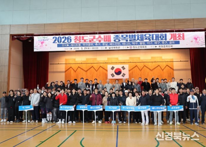 [신경북뉴스] 청도군체육회가 주최하고 각 가맹경기단체가 주관한 ‘2026년 청도군수배 종목별 체육대회’가 지난 21일 청도국민체육센터 실내체육관에서 합동 개회식을 진행했다.