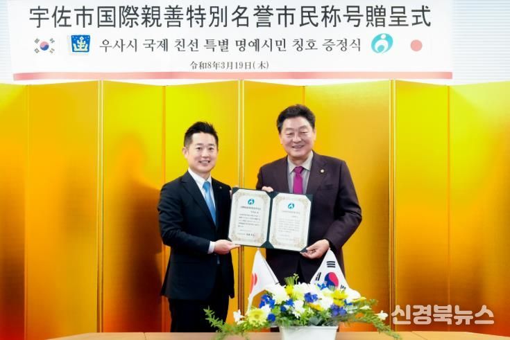 [신경북뉴스] 경주시의회 이동협 의장이 일본 오이타현 우사시로부터 외국인으로는 처음으로 '국제친선 특별 명예시민'에 선정됐다.