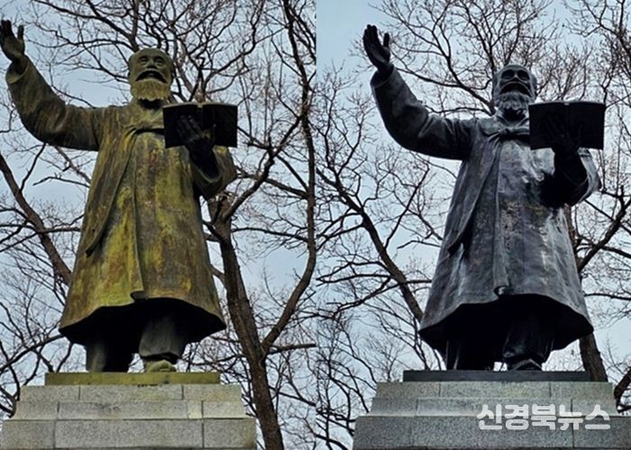 [신경북뉴스] 경주 황성공원에 위치한 동상들이 오랜 기간 쌓인 오염을 제거하고 외관을 정비하는 작업을 마쳤다.