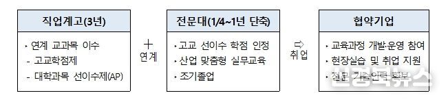 이 사업은 전문대학이 직업계고와 협력하여 교육과정을 연계하고 전문학사 취득 기간을 1학기 이상 단축함으로써, 지역 산업에 필요한 전문 기술인재를 조기에 양성할 수 있도록 올해 처음 재정지원 사업으로 추진된다.