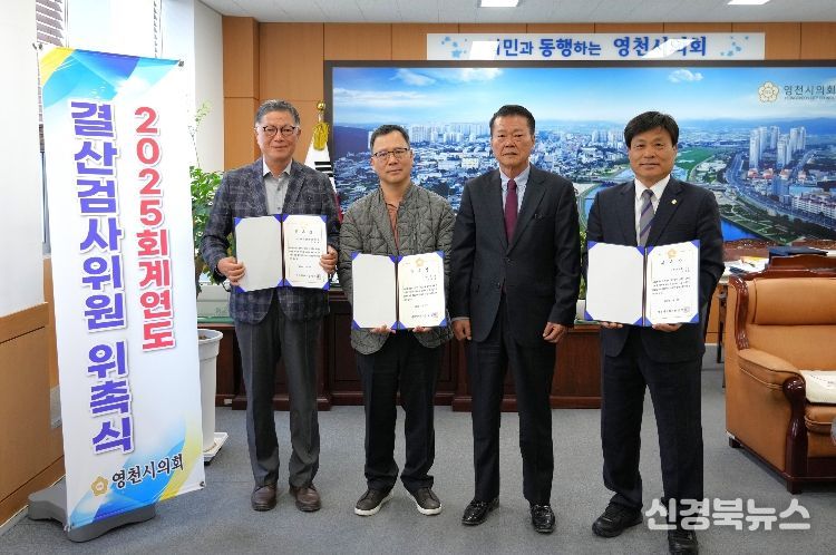 [신경북뉴스] 영천시의회가 2025회계연도 결산검사위원으로 김상호 의원, 권혁희 세무사, 이종규 전 영천시 국장을 3일 위촉했다.