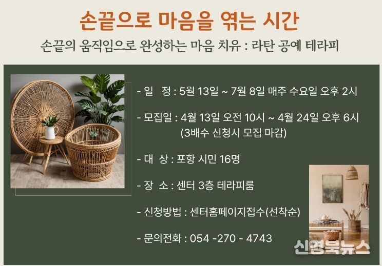 참여 신청은 오는 13일부터 24일까지 포항트라우마센터 홈페이지를 통해 선착순으로 접수한다.