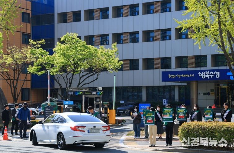 [신경북뉴스] 대구 수성구는 최근 원유 수급 불안정에 따른 에너지 위기 상황에 대응해 공영주차장 승용차 5부제 정책을 시민들에게 알리기 위한 홍보 캠페인을 진행했다.