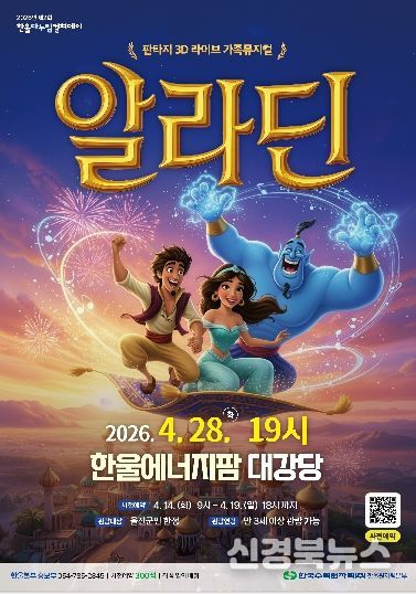 [신경북뉴스] 한국수력원자력(주) 한울원자력본부는 4월 28일 19시 한울에너지팜 대강당에서 제2회 ‘한울다누림컬쳐데이’ 아동 뮤지컬 '알라딘'을 개최한다.