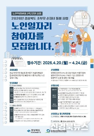 참여를 희망하는 조부모와 대상 가정은 포항시니어클럽을 방문해 신청할 수 있으며, 소득 수준과 돌봄 필요성, 참여자의 활동 역량 등을 종합적으로 평가해 최종 선발한다.