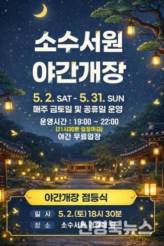 권순도 소수서원관리사무소장은 “소수서원 야간개장은 전통문화유산을 색다른 방식으로 체험할 수 있는 기회”라며 “많은 시민과 관광객들이 서원의 고즈넉한 밤 풍경 속에서 선비문화의 깊이를 느끼길 바란다”고 말했다.