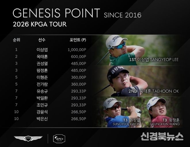 권성열(40)과 왕정훈(31.DAEJIN)이 485포인트로 제네시스 포인트 3위, 이형준(34.웰컴저축은행), 전가람(31.LS)이 360포인트로 제네시스 포인트 5위에 이름을 올렸다.