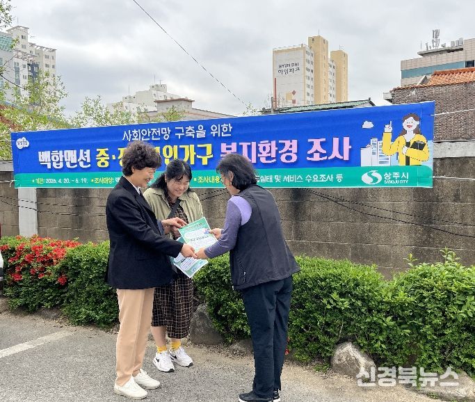 [신경북뉴스] 상주시는 4월 20일부터 6월 19일까지 상주시 백합맨션 거주 중·장년(40~64세) 1인 가구를 대상으로 고독사 예방 및 사회적 고립가구 조기발견을 위한 복지환경 조사를 실시한다.