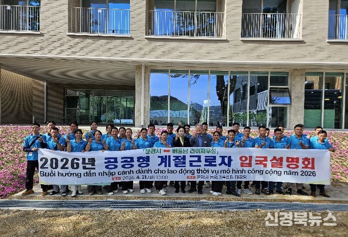 [신경북뉴스] 문경시는 4월 21일 농업기술센터 대강당에서 2026년 공공형 계절근로자 1차 입국자 30명을 대상으로 입국설명회를 개최하고 본격적인 농가 인력 지원에 나섰다.