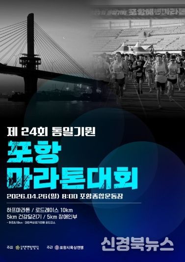[신경북뉴스] 전국 마라톤 동호인 1만 명이 참가하는 제24회 통일기원 포항마라톤대회가 오는 26일 열린다.
