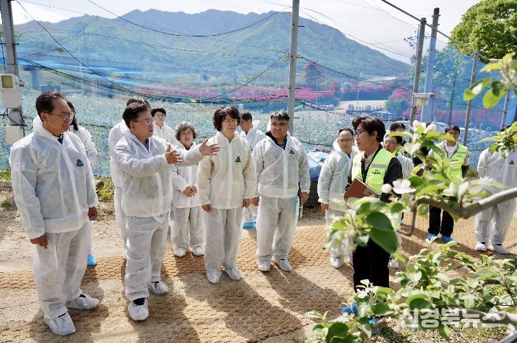 [신경북뉴스] 경상북도농업기술원은 22일 사과 주산지 영주시에서 과수화상병 확산 방지를 위해 중앙·도 합동 개화기 약제 방제 추진 상황을 점검했다.