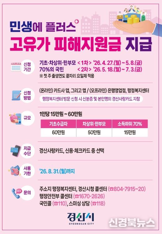 [신경북뉴스] 경산시는 27일부터 시작되는 '고유가 피해지원금' 1차 지급을 앞두고, 전담 T/F(Task Force) 구성과 읍·면·동 담당자 교육 등 신속한 지원금 지급 준비에 박차를 가하고 있다.