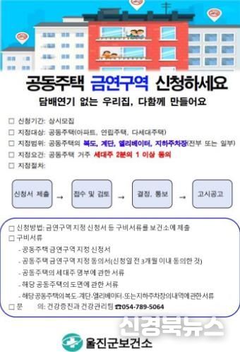 [신경북뉴스] 울진군은 금연환경 조성 및 쾌적한 주거환경 조성을 위해 관내 공동주택을 대상으로‘공동주택 금연구역 지정’을 연중 신청받는다.