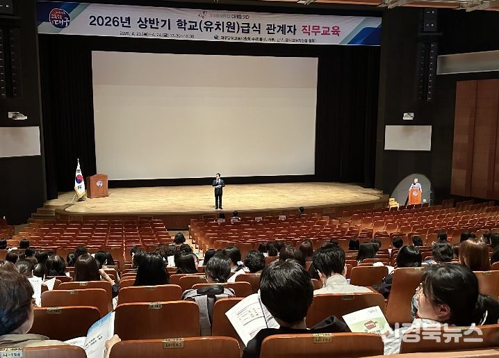 [신경북뉴스] 대구달성교육지원청은 4월 23일부터 24일까지 이틀간 대구학생문화센터 대공연장에서 대구지역 전체 영양(교)사·조리사·학교급식소위원(학부모) 등 1,902명을 대상으로 ‘학교급식 관계자 직무연수’를 개최한다.