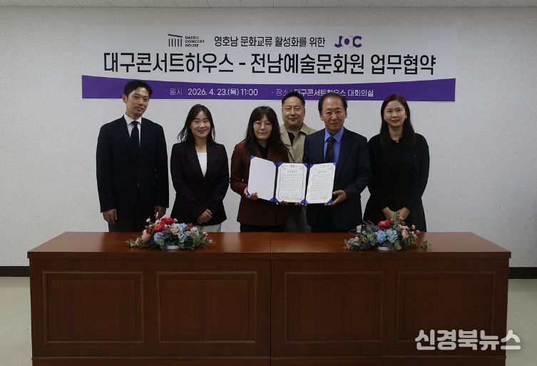 [신경북뉴스] 대구문화예술진흥원 대구콘서트하우스는 4월 23일 전남예술문화원(대표 마윤미)과 영호남 문화교류 활성화를 위한 업무협약을 체결했다.