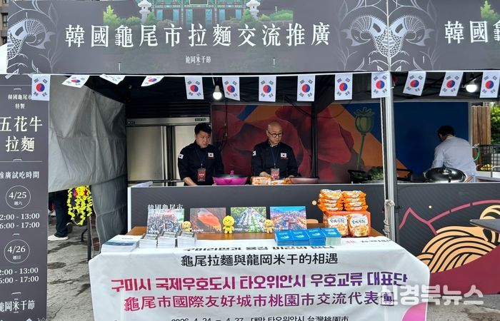 [신경북뉴스] 구미시가 대만 타오위안시 대표 미식축제에 참여해 K-라면을 앞세운 도시 브랜드를 알리고, 양 도시 간 교류 협력의 폭을 넓혔다.