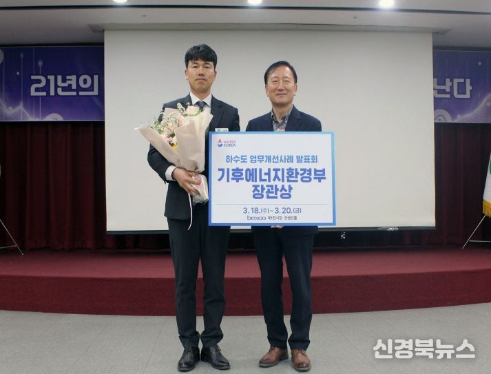 [신경북뉴스] 안동시시설관리공단은 한국상하수도협회가 주최하고 기후에너지환경부가 후원한 '2026 WATER KOREA 하수도 업무 개선 발표회'에서 최고 영예인 기후에너지환경부 장관상을 수상했다고 4월 27일 밝혔다.