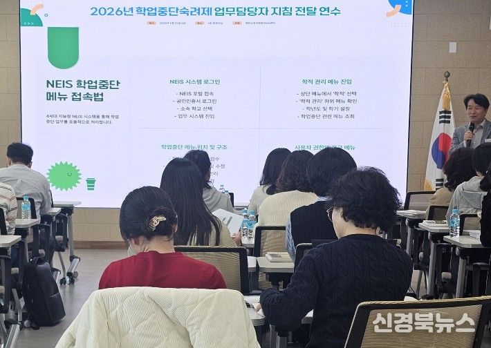[신경북뉴스] 예천교육지원청 Wee센터는 4월 24일 예천교육지원청 중회의실에서 관내 학업중단숙려제 업무 담당자 30명이 참석한 가운데, ‘2026학년도 학업중단숙려제 업무담당자 지침 전달 연수’를 실시했다.