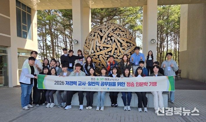 [신경북뉴스] 청송교육지원청은 2026년 4월 25일, 청송 관내 저경력 교사와 일반직 공무원 30여명을 대상으로 청송 인문학 기행을 실시했다. 이번 인문학 기행은 2026년 청송 솔그린 미래교육지구의 신규 사업으로 청송 관내에 근무하는 젊은 교사와 일반직 공무원이 청송의 인문·지리·역사를 알고, 특화된 예술 체험과 문화재 탐방을 통해 학교를 비롯한 여러 장소에서 학생에게 더 좋은 수업과 행정을 지원하기 위해 진행됐다.
