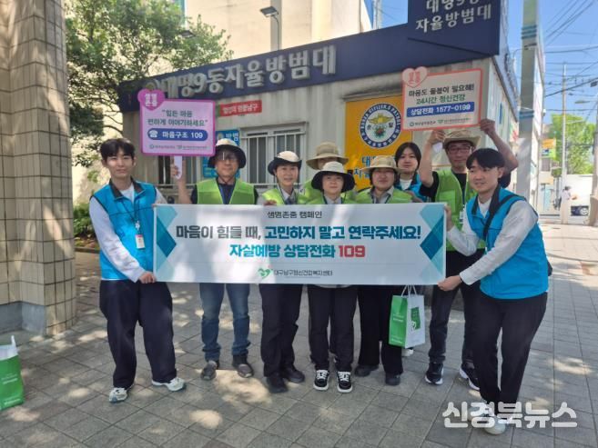 [신경북뉴스] 대구 남구보건소(남구정신건강복지센터)는 지난 4월 15일 자살 고위험 기간 집중 관리를 위하여 대명9동 일대를 중심으로 대명9동 자율방범대(생명지킴이)와 협력하여 생명존중 가두캠페인을 펼쳤다.