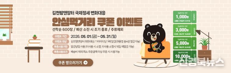 [신경북뉴스] 김천시는 최근 글로벌 물류 불안과 대외 여건 변화에 대응하고, 지역 농가의 경영 부담 완화와 내수 소비 활성화를 위해 김천시 대표 농특산물 온라인 쇼핑몰 ‘김천팜앤장터’에서 5월 한 달간 농특산물 소비 특별전을 운영한다.
