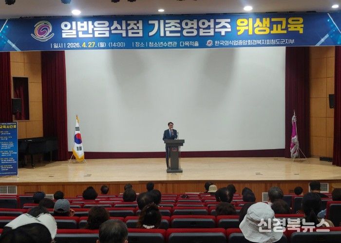 [신경북뉴스] 청도군은 27일 청소년수련관 다목적홀에서 2026년도 일반음식점 기존 영업주 위생교육을 실시했다.