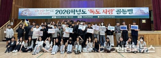 [신경북뉴스] 의성교육지원청은 우리 땅 독도에 대한 올바른 이해와 영토 수호 의지를 다지는 2026 독도 사랑 골든벨’행사가 27일 오후 2시, 의성학생체육관에서 관내 학생과 교직원들의 뜨거운 열기 속에 마무리했다.