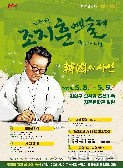 [신경북뉴스] 영양군은 우리나라를 대표하는 청록파 시인이자 《지조론》의 저자인 조지훈 선생의 문학정신을 기리고자 오는 5월 8일부터 9일까지 2일간 영양군 일월면 주실마을 일원에서 '제19회 조지훈 예술제'를 개최한다.
