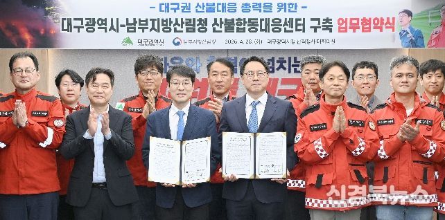 [신경북뉴스] 대구광역시와 남부지방산림청은 함지산 산불이 발생한 지 1년이 되는 4월 28일 오전 11시 30분, 시청 산격청사에서 ‘대구권 산불대응 총력을 위한 산불합동대응센터 업무협약’을 체결했다.