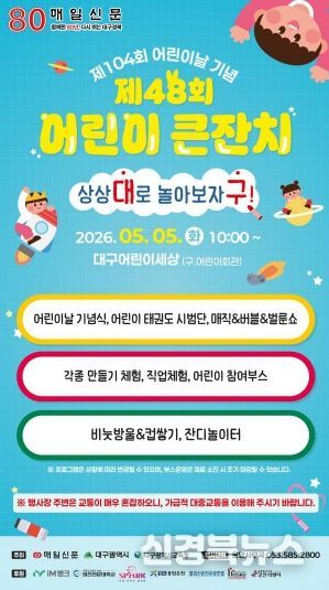[신경북뉴스] 대구광역시는 제104회 어린이날을 맞아 어린이와 온 가족이 함께 즐길 수 있는 풍성한 문화·체험 행사를 시 전역에서 개최한다.