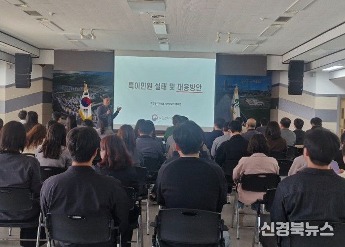 이번 교육은 특이민원 유형별 대응 전략, 사례 기반의 실무 대응 요령 등을 중심으로 국민권익위원회 소속 특이민원 시민상담관 박재병 강사가 참여해 실제 상담 사례를 중심으로 한 실전형 교육이 진행 됐다.