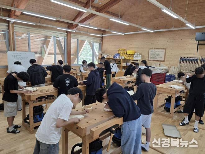 [신경북뉴스] 상주시 성주봉자연휴양림의 상주목재문화체험장과 힐링센터에서는 지난 4월 27일 안동경덕중학교 학생들 150여명을 대상으로 목재문화체험장과 힐링센터에서 독서대 만들기 체험과 숲 해설 체험을 진행했다.