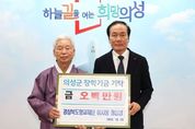 [신경북뉴스] 재단법인 의성군인재육성재단(이사장 김주수 의성군수)은 지난 12월 10일 경상북도 향교재단 정상영 이사장이 의성군 인재 육성을 위해 장학금 500만 원을 기탁했다고 밝혔다. 정상영 이사장은 팔순을 맞아 잔치 대신 그 비용을 장학금으로 기탁하며 지역사회와 미래세대를 위한 나눔을 실천했다. 정상영 이사장은 “팔순을 맞아 받은 많은 축하의 마음을 지역 학생들에게 돌려주고자 한다. 이 장학금이 지역의 미래를 이끌 인재들에게 작은 보탬이 되길 바란다”고 말했다. 김주수 의성군수는 “고향에 대한 깊은 애정과 뜻깊은 나눔을 실천해 주신 정상영 이사장님께 진심으로 감사드린다”며 “기탁해 주신 장학금은 지역 학생들이 꿈을 키우고 훌륭한 미래의 주인공으로 성장할 수 있도록 학업 지원과 인재 육성을 위해 소중히 사용하겠다”고 말했다.