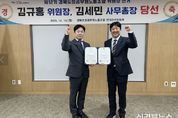[신경북뉴스] 경북도청공무원노동조합 선거관리위원회는 16일 노동조합위원장선거 당선인 공고를 통해 제12기 경북도청공무원노동조합 위원장에 김규홍, 사무총장에 김세민 후보가 선출됐다고 밝혔다. 김규홍-김세민 당선자는 지난 12월 15일 실시된 제12기 경북도청공무원노동조합 위원장 선거에 단독 출마하여, 유권자 1,863명 중 1,088명(58.4%)이 참여한 투표에서 1,006표(92.5%)의 찬성표를 얻어 최종 당선됐다. 김규홍 위원장 당선자는 당선 소감을 통해 “‘든든한 노조, 깨어있는 노조, 행동하는 노조’가 될 수 있도록 늘 낮은 자세로 조합원과 소통하겠으며, 합리적인 노사관계 속에서 조합원의 권익을 지키고, 안전하고 공정한 근무 환경을 만드는 데 최선을 다하겠다”고 밝혔다. 김규홍-김세민 당선자는 제11기 경북도청공무원노동조합에서 사무총장과 사무차장을 각각 역임했으며, 앞으로 2년간(2026.2.1.~2028.1.31.) 제12기 경북도청공무원노동조합을 이끌게 된다.