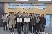 [신경북뉴스] (재)포항국제전시컨벤션센터(POEX, 대표이사 송남운)는 15일 포항 첨단해양R&D센터에서 포항공과대학교(POSTECH)와 지역 학술행사 활성화 및 MICE 기반 강화를 위한 업무협약을 체결했다. 이번 협약은 2027년 개관 예정인 POEX가 개관 초기부터 안정적인 행사 운영 기반을 마련하고, 지역 내 연구·산업 기관과의 연계를 강화해 포항을 학술·산업 분야의 국제 교류 거점으로 육성하기 위한 사전 준비 차원에서 추진됐다. 특히 세계적 연구대학과 대형 컨벤션 인프라의 협력으로 포항의 학술·산업 경쟁력을 한층 끌어올리는 시너지 효과가 기대된다. 협약에 따라 양 기관은 POSTECH이 매년 주관하는 학술대회와 연구센터 심포지엄, 산학 공동포럼 등이 포항에서 안정적으로 개최될 수 있도록 상호 협력한다. POEX는 개관 이후 대형 컨벤션홀과 모듈형 전시장, 국제회의에 적합한 음향·영상 시스템 등 시설과 운영 역량을 바탕으로 학술·연구 분야의 주요 행사를 수용할 수 있는 환경을 조성할 예정이다. 이를 통해 수도권 중심으로 개최되던 일부 학술행사의 포항 이전을 유도하고, 지역 내