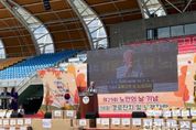 [신경북뉴스] 경산시는 10월 경로의 달을 맞아 27일 경산시민운동장에서 관내 어르신 7,000여 명을 모시고 제29회 노인의 날 기념행사 및 제18회 경로잔치를 개최했다. 경산시청년연합회 (회장 최재영) 주관으로 열린 이번 행사는 노인에 대한 사회적 관심과 공경 의식을 높이기 위해 마련되어 지역사회 연대와 세대 간 화합을 다짐하는 뜻깊은 자리가 됐고, 노인 복지 기여자 보건복지부 장관 표창, 도지사 표창, 모범 어르신 시장 표창이 수여되어 노인복지에 대한 관심을 제고하고, 어르신들의 자긍심을 드높이는 계기가 됐다. 이번 행사는 고고장구, 보인 농악 사전 공연으로 전통의 멋을 한껏 느끼며 시작됐고 이어지는 품바 공연으로 흥을 돋운 후, 가수 이은호, 김초이, 황태자의 축하 무대와 어르신들이 직접 참여하는 읍면동 노래자랑으로 다채롭게 진행됐다. 특히, 지역 현안인 경산과 울산을 잇는 고속도로가 하루속히 신설되어 영남권 교통물류 혁신과 미래 성장의 대동맥이 되기를 기원하는 퍼포먼스로 28만 경산 시민과 함께 새로운 길을 여는 희망의 메시지를 염원했다. 조현일 경산시장은 “어르신들은 우리 사