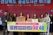 [신경북뉴스] 안동시립어린이도서관이 ‘2025년 경상북도 공공도서관 운영 평가’에서 대상으로 선정돼, 12월 15일(월) 포항 라한호텔에서 열린 ‘경상북도 공공도서관 워크숍’에서 도지사 표창을 받았다. 경상북도는 도내 43개 시․군립 공공도서관을 대상으로 매년 운영 평가를 실시하고 있으며, 올해 평가는 2024년 실적을 기준으로 ▲예산 및 장서 확충 ▲사서 배치 비율 ▲전문성 등 12개 지표에 대한 정량평가와 도서관별 운영 사례를 반영한 정성평가를 합산해 그룹별(A~D)로 수상 기관을 선정했다. 안동시립어린이도서관은 그중 B그룹에서 가장 높은 평가 점수를 받아 대상을 수상하게 됐다. 특히, 지난해에 이어 진행 중인 ‘도서관 가을소풍 – 북크닉’ 프로그램이 좋은 평가를 받았으며, 주민이 문화를 경험하고 소통할 수 있는 복합문화 플랫폼으로 자리매김하기 위한 노력이 인정받은 결과로 분석된다. 안동시립도서관 웅부도서관이 2023년과 2024년 최우수상에 선정된 데 이어, 이번 어린이도서관의 대상 수상으로 안동시립도서관의 운영 역량을 입증하게 됐다. 시립도서관 관계자는 “이번 대상 수상은 시민 중심의 도서관