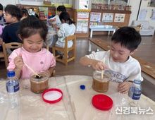 [신경북뉴스] 예천군 새벗유치원(원장 우수경)은 10월 29일 수요일 각 반 교실에서 유아 122명을 대상으로 전통장 만들기 체험을 실시했다. 이번 체험은 1회로 끝나지 않고 이후 고추장 만들기 체험으로 이어질 예정이다. 전통장 만들기 체험은 콩을 주원료로 한 우리나라 고유의 발효식품을 경험하고 전통음식의 효능에 대해 알아보며 전통음식의 가치를 이해하는 데 목적이 있다. 된장 체험은 된장을 만드는 데 필요한 재료인 메주콩, 씨간장, 다시마 등에 대해 충분히 알아본 후 적당한 비율로 배합하여 만들어보며 진행된다. 4세 000은 “된장이 완성되면 엄마랑 아빠랑 된장찌개를 만들어 먹을래요”라고 말했고, 5세 000은 “된장이 익으려면 한 달은 기다려야 한대요. 맛있게 익으라고 매일 이야기해줄 거예요!”라고 소감을 밝혔다. 우수경 원장은 “유아들이 전통장 만들기를 통해 우리 전통 발효 음식의 가치를 배우고 자연의 재료들이 서로 어우러지는 과정을 이해하는 좋은 기회가 되었습니다. 유아들이 전통 음식의 중요성과 함께 기다림의 소중함을 느끼며 우리 문화와 자연에 대한 사랑을 키워가길 바랍니다.”라고 밝혔다.