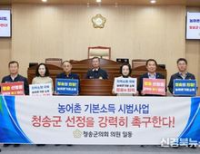 [신경북뉴스] 청송군의회는 지난 26일 제4차 의원간담회를 통해 ‘농어촌기본소득시범사업’ 선정 촉구 건의안을 채택했다.  이번 건의안은 지역 소멸 위기에 대응하고 농어촌의 지속 가능한 발전을 위해 정부가 추진 중인 ‘농어촌기본소득시범사업’에 청송군이 선정될 수 있도록 촉구하는 내용을 담고 있다.  심상휴 의장은 농어촌 기본소득이 단순한 소득 지원 차원을 넘어 지역공동체 유지와 생활구조 개선, 농어촌 순환경제 구축을 위한 핵심 정책임을 강조하며 특히, 시범사업 기간이 2년으로 짧은 만큼, 정책 수용성과 추진 의지가 확고한 지자체가 선정되어야 성과를 도출할 수 있다고 주장했다.  청송군은 그간 관광객, 지역민 구분 없이 시내버스를 무료로 이용할 수 있는 ▲시내버스 무료 운행, 65세 이상 노인가구를 대상으로 전기, 수도 고장, 전등 교체 등 가구 내 간단한 생활 불편을 해소해 주는 ▲8282민원처리서비스, ▲지역상품권인 청송화폐 10% 상시 할인 정책 등 선별적, 일방적 복지를 넘어서 ‘기본사회’ 실현을 위해 지자체 차원의 노력을 기울여 왔으며 이런 정책들을 근거로 청송군이 농어촌기본소득 시범사업의 최적지임을