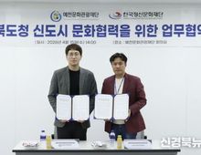[신경북뉴스] 예천문화관광재단은 15일 예천군문화회관 2층 회의실에서 안동시 한국정신문화재단과 경북도청신도시 기반의 지역 문화자원 연계 및 지속 가능한 문화협력 체계 구축을 위한 업무협약(MOU)을 체결했다. 이번 협약은 그동안 행정구역이 달라 함께 추진하기 어려웠던 도청신도시 내 문화사업을 본격적으로 추진하기 위해 마련됐다. 이를 통해 신도시 내 다양한 민간 공간을 주민들이 일상에서 이용할 수 있는 문화 공간으로 전환해 생활 속 문화환경을 만들어 갈 계획이다. 안동시는 지난 2024년 ‘문화도시’로 지정되며 광역 거점의 역할을 수행 중이며, 예천군은 2025년부터 2년간 총 15억 원 규모의 ‘문화특화지역조성사업’을 통해 문화도시 도약을 위한 준비를 하고 있다. 양 기관은 이번 협약을 통해 예천 문화특화지역조성사업의 일환으로 추진됐던 '우리동네:문화샘터'를 기반으로 각 지자체 예산을 투입해 구체적인 협력 사업을 추진한다. 주요 내용은 ▲신도시 내 민간 공간 운영자 모집 및 문화 기획 교육 ▲일상 공간의 문화공간화 ▲특색 있는 주민 운영 문화공간 분류 및 연계 ▲민간 문화공간을 활용한 문화투어 프로