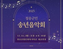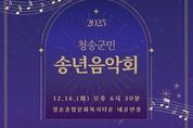 [신경북뉴스] 청송군은 한 해를 마무리하며 오는 16일 오후 6시 30분 청송문화예술회관 대공연장에서 ‘2025 청송군민 송년음악회’를 개최한다고 밝혔다. 이번 음악회는 청송문화원이 주관하고 청송군과 청송군의회가 후원하는 행사로, 지역 문화예술인과 인기 초대가수들이 함께해 군민 모두가 즐길 수 있는 다채로운 공연을 선보일 예정이다. 특히, 한 해 동안 군민들이 만들어온 성과를 되돌아보고 새로운 도약을 준비하는 의미 있는 송년의 장으로 마련됐다. 공연은 청송문화원 풍물단의 사물놀이로 힘차게 막을 올린 뒤, 청송문화원 합창단 등 지역 문화예술인의 무대가 이어져 지역 예술의 저력을 보여줄 예정이다. 또한 초대가수 구창모, 왁스, 권미희가 참여해 다양한 장르의 음악과 매력적인 무대로 현장의 분위기를 더욱 뜨겁게 달굴 것으로 기대된다. 청송군 관계자는 “이번 공연이 군민 여러분께 올 한 해를 되돌아보고 서로를 격려하는 따뜻한 시간이 되길 바란다.”며, “2025년을 잘 마무리하고, 다가오는 2026년 병오년을 희망과 기대 속에 맞이하는 뜻깊은 행사가 되기를 바란다.”고 전했다.